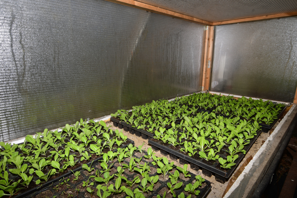Der Start in diesem Frühjahr war weitaus besser verlaufen als im Vorjahr. Es war trocken, der Boden lies sich gut beackern, so haben wir in vorbereiteten Freilandbeeten bereits dicke Bohnen gelegt, Zwiebeln gesteckt, Spinat, Radieschen und Möhren ausgesät. Die gesamte Fläche der drei Gewächshäuser (1.000 qm²) sind mit Vorkulturen wie Kohlrabi, Stielmus, Spinat, Frühlingszwiebeln und Salat bepflanzt, hier können wir bereits einiges ernten.