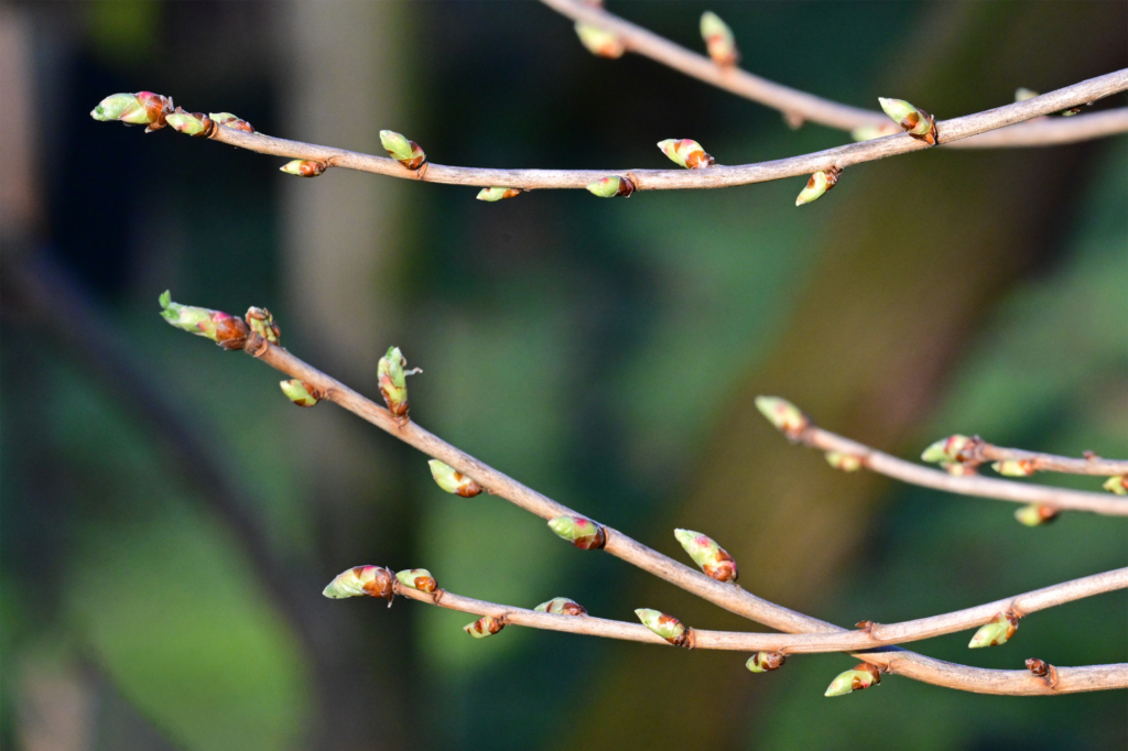Schmetterlinge wie das Tagpfauenauge, Kleiner und Großer Fuchs, C-Falter oder Zitronenfalter, die als  ausgewachsene Falter überwintern, kreuzen immer wieder unseren Weg. Es ist schon ein besonderes Gefühl, nach der dunklen Jahreszeit den ersten Zitronenfalter zu beobachten, wie er auf der Suche nach Nahrung  umherflattert. Bienen sind emsig dabei Pollen von Haselnuss, Winterlingen oder Schneeglöckchen einzusammeln, Knospen an den Ästen der Sträucher und Bäume erwachen, spreizen sich ab, erste Blätter oder Blüten kommen zum Vorschein. Am Himmel sind immer wieder Kranichformationen zu sehen, deren markanter Ruf ihr Vorbeiziehen zuvor angekündigt hat. Erste Weißstörche besetzen ihren angestammten Horst (hoffentlich bald auch den neu eingerichteten Horst neben dem Kuhstall), und auch die ersten Kiebitze und Bachstelzen sind zum Laakenhof zurückgekehrt.