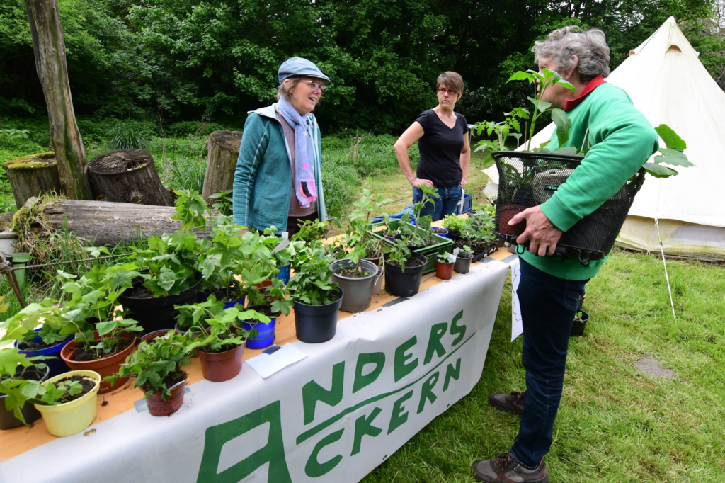 Zum Start in die neue Gartensaison fand auf dem Laakenhof im Permakultur Waldgarten des Vereins anders ackern e.V. erneut ein Jungpflanzenmarkt statt. Die Nachfrage nach Tomaten, Paprika, Gurken, Kürbis oder Zucchini, alle aus eigener Anzucht, war auf dem gut besuchtem Jungpflanzenmarkt recht groß. Die Verkaufsstände von Gabi & Andreas vom Biohof Feldmann aus Sünninghausen, Gudrun & Markus vom Bioladen Agricola aus Ennigerloh mit ihrem speziellen Angebot an Tomaten Raritäten, sowie die Initiative „Mutter Erde Saaten“, die Pflanzen und samenfestes Saatgut aus eigener Vermehrung angeboten haben, waren ebenfalls gut frequentiert. An der Pflanzen Tauschbörse, die das Team vom Permakultur Waldgarten organisiert hatte, wurde eine recht große Palette an Kultur- und Zierpflanzen von Besucher*innen mitgebracht, getauscht, oder gegen eine Spende erworben. Hier, und an den Verkaufsständen fand ein reger Austausch über allerlei Pflanzen & Saatgut statt.