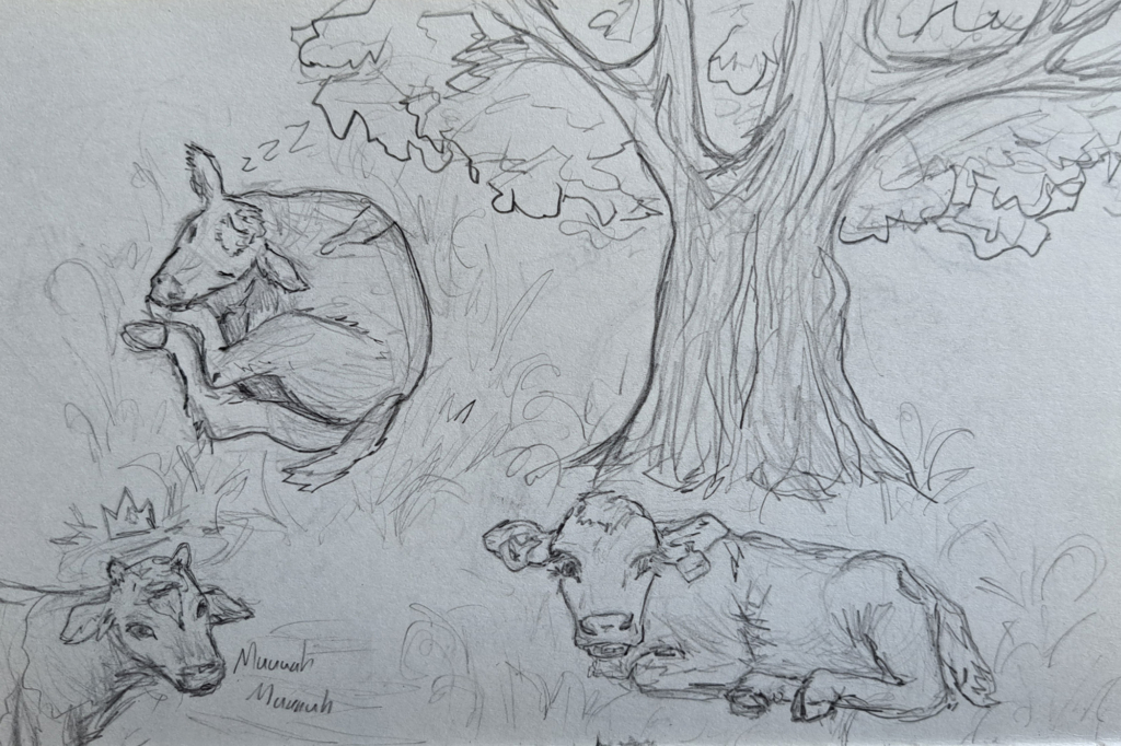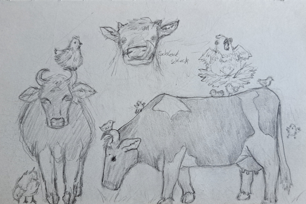 FÖJ-lerin Leona liebt Tiere, ganz besonders die Kühe, Rinder & Kälbchen auf dem Laakenhof. Leona hat neben handwerklichen Fähigkeiten stets einen Ergebnis orientierten Blick auf täglich anfallende Situationen rund um ihre Tätigkeitsfelder auf dem Laakenhof. Bewundernswert ist Leonas künstlerischer Blick, fängt sie doch immer wieder mit Stift und Papier Momente ein, auf die ihre Fokus gerade gefallen ist.